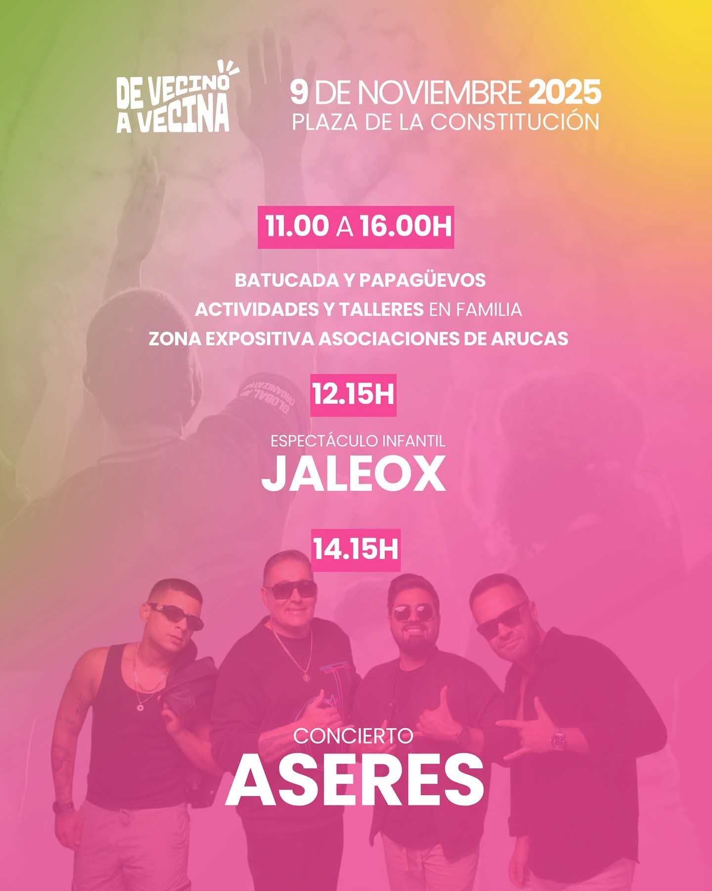 La Plaza de la Constitución de Arucas y la Calle León y Castillo se llenarán de vida el próximo domingo 9 de noviembre, con motivo de la celebración del Día del Vecino y la Vecina, una cita organizada por la Concejalía de Participación Ciudadana del Ayuntamiento de Arucas.