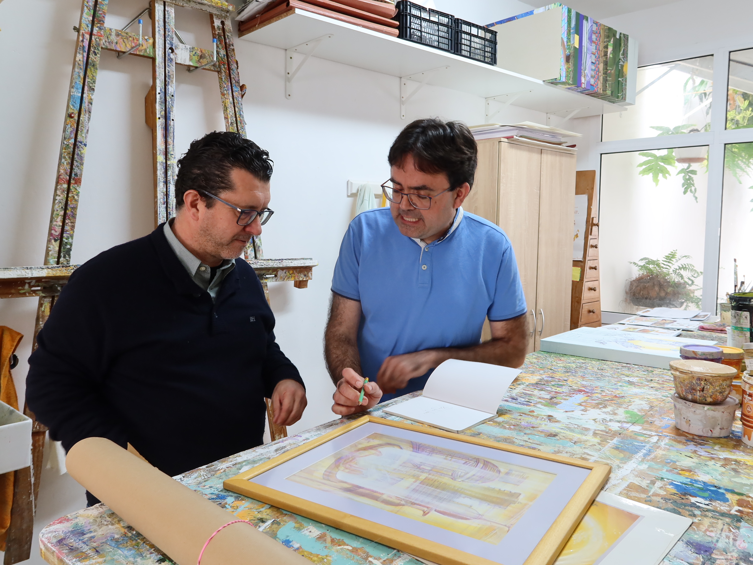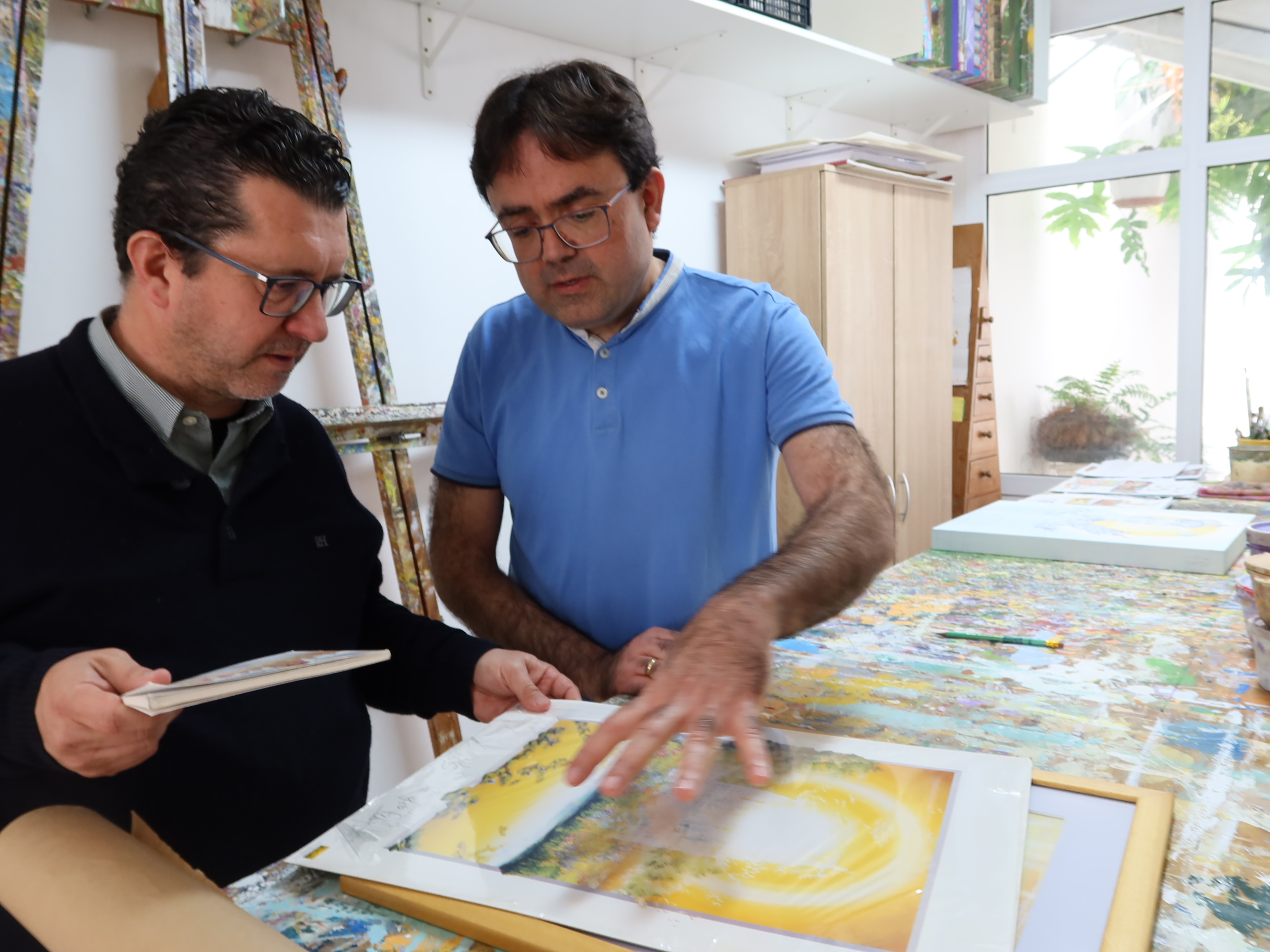 El alcalde de Arucas, Juan Jesús Facundo, ha visitado este miércoles en su atelier, en Santidad, al artista afincado en el municipio, Felipe Juan. En esta visita, el primer edil le ha trasladado su admiración por el trabajo creativo, obra de la que podrá disfrutar la población próximamente en el municipio de Arucas.