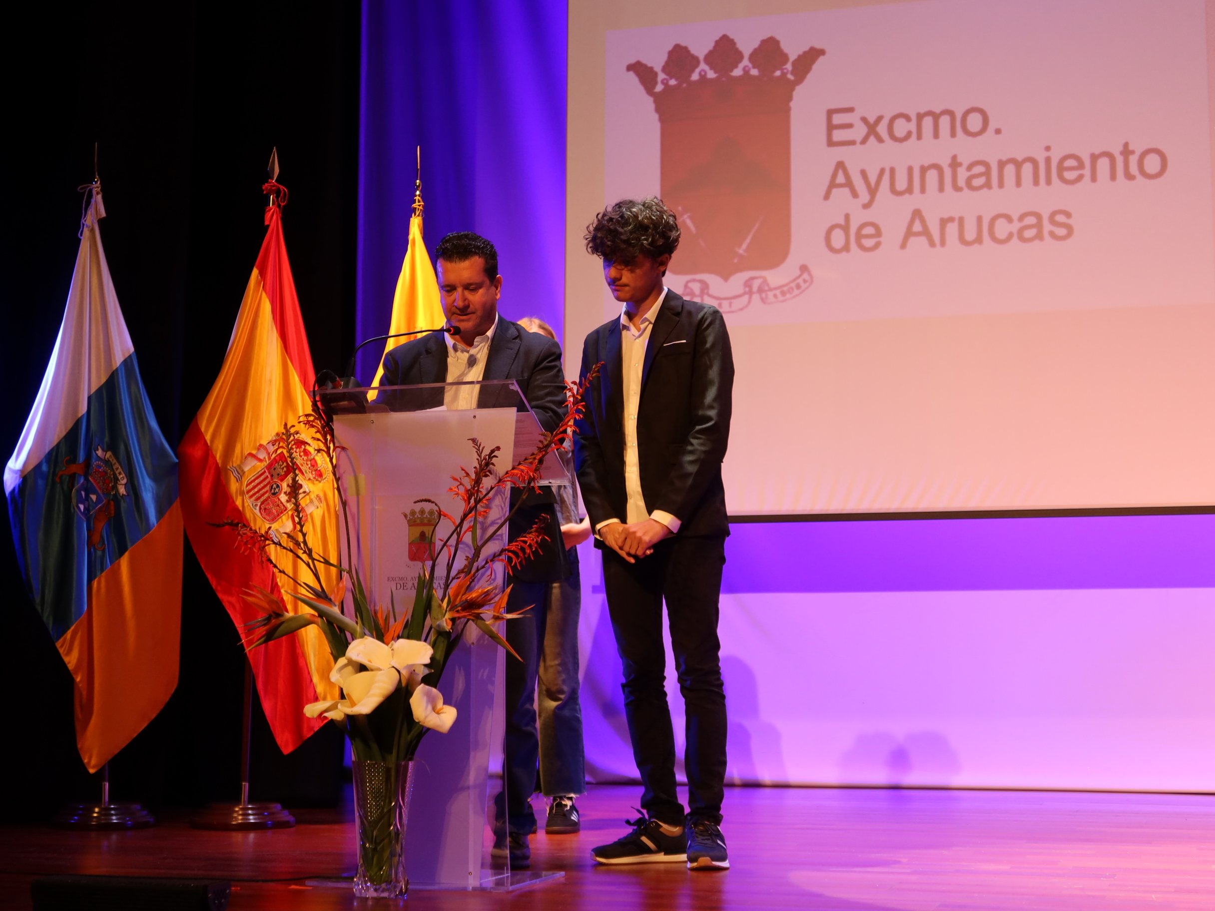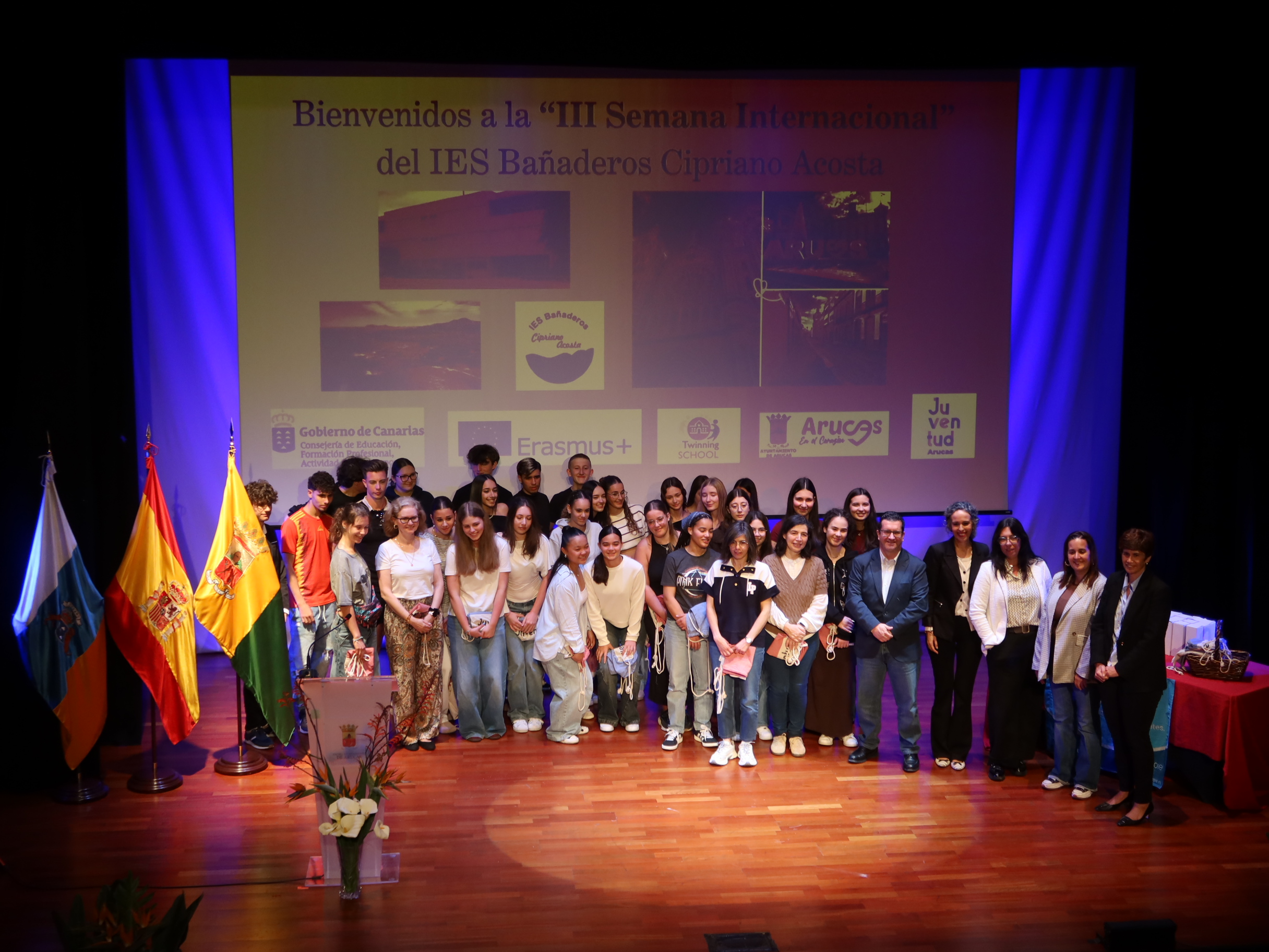 El alcalde de Arucas dio una cálida bienvenida al alumnado y equipo docente extranjero, animándolos a disfrutar del intercambio académico, del que destacó su importancia en cuanto que construye Europa, gracias a los puentes que se establecen entre países.
